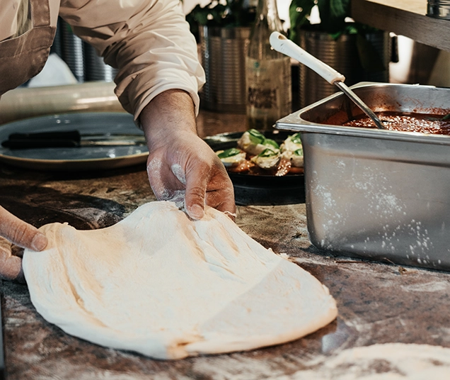 Tauchen Sie ein in die Welt der italienischen Pizza, die wir traditionell im Holzofen zubereiten.